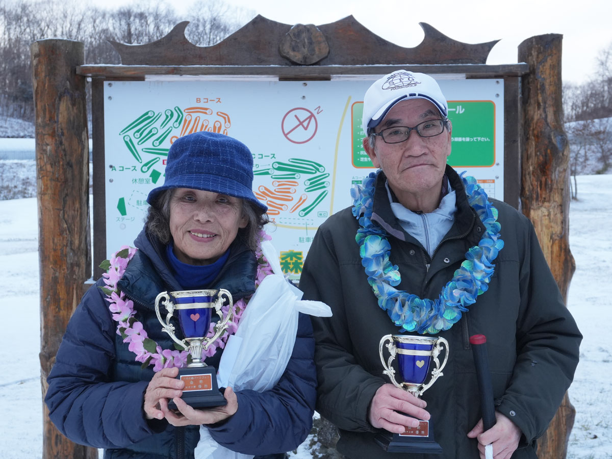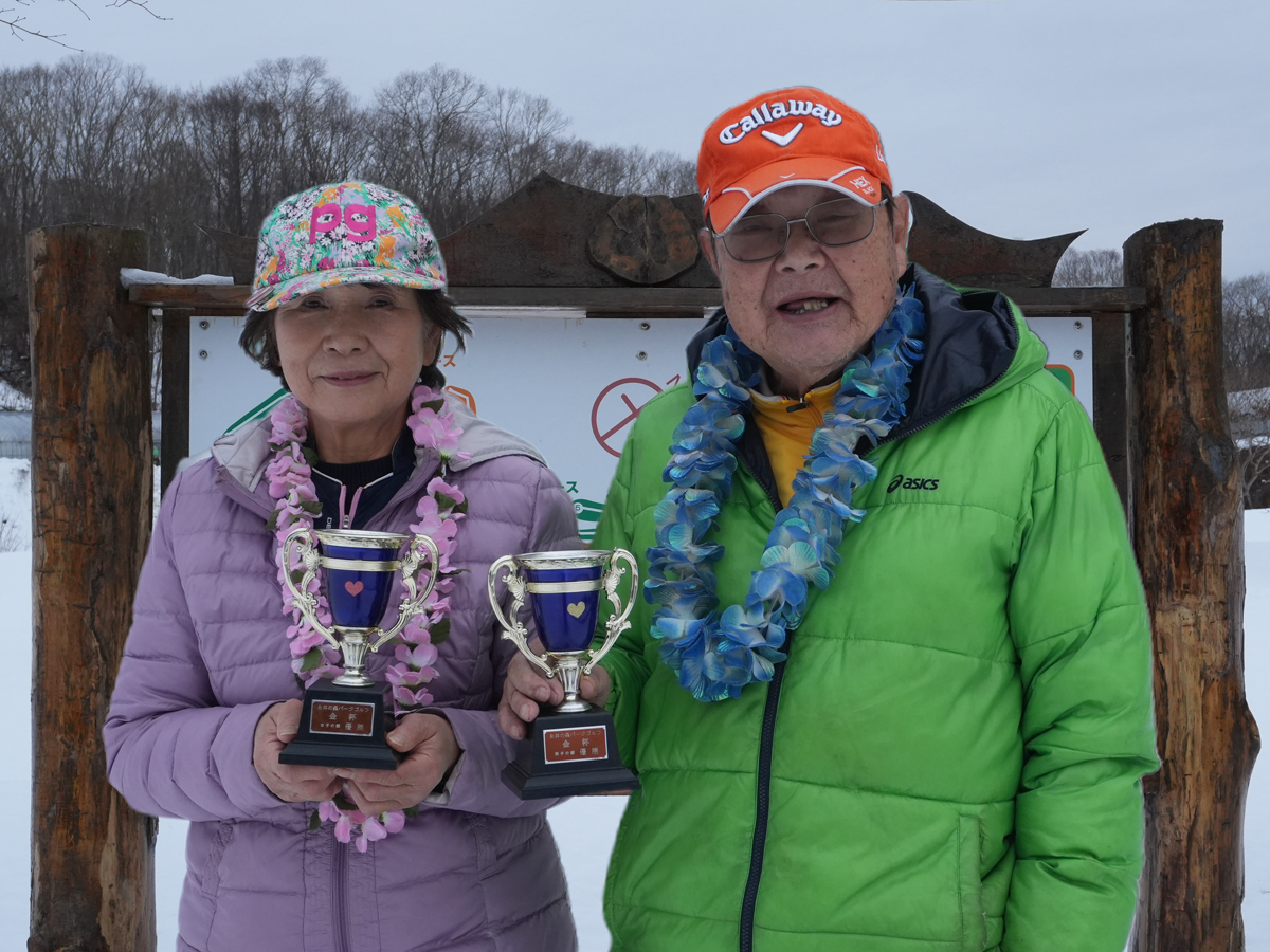 参加者39名 12月17日(水)12時30分スタート[ 優勝者 ]男子/佐藤孝さん ネット85女子/山本えり子さん ネット86今日は週のど真ん中「水カップ」。なかなか積雪が減りませんが、雪に閉ざされた屋外をよそに安心安定の屋内でボールと戯れていただきました。これから来週にかけて気温が上がってきそうなので年内にまた屋外プレーが出来るかもしれませんね。その時はドローン映像でお知らせします。さて、男子は男女合わせて最高ハンデを味方につけた佐藤孝さんが、女子は男女合わせて最高ベスグロの山本えり子さんが2週連続優勝。ついに念願のご褒美「タコハイ」をゲットしました。おめでとうございます!