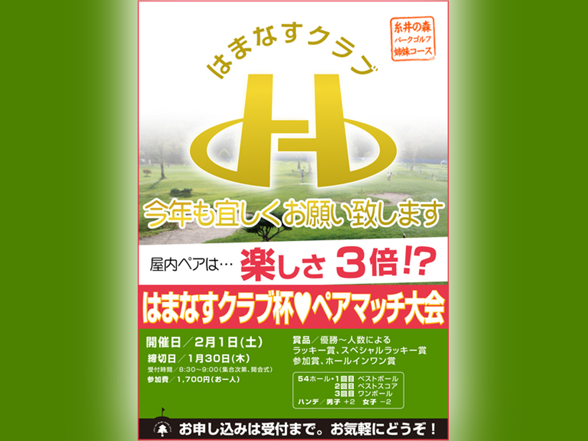 1月31日、屋内ペアシリーズ第4弾「はまなすクラブ杯♥ペアマッチ大会」が24組48名の参加で開催されました。3つの競技方法(ベストボール、ベストスコア、ワンボール)による屋内ペアマッチシリーズは後半戦に突入。冠の姉妹コース「はまなすクラブ」は今年も4月1日オープンを予定しております。一部コースを変更し、さらに面白く、より良質な芝のコースづくりを進めていきますので、どうぞご期待ください。