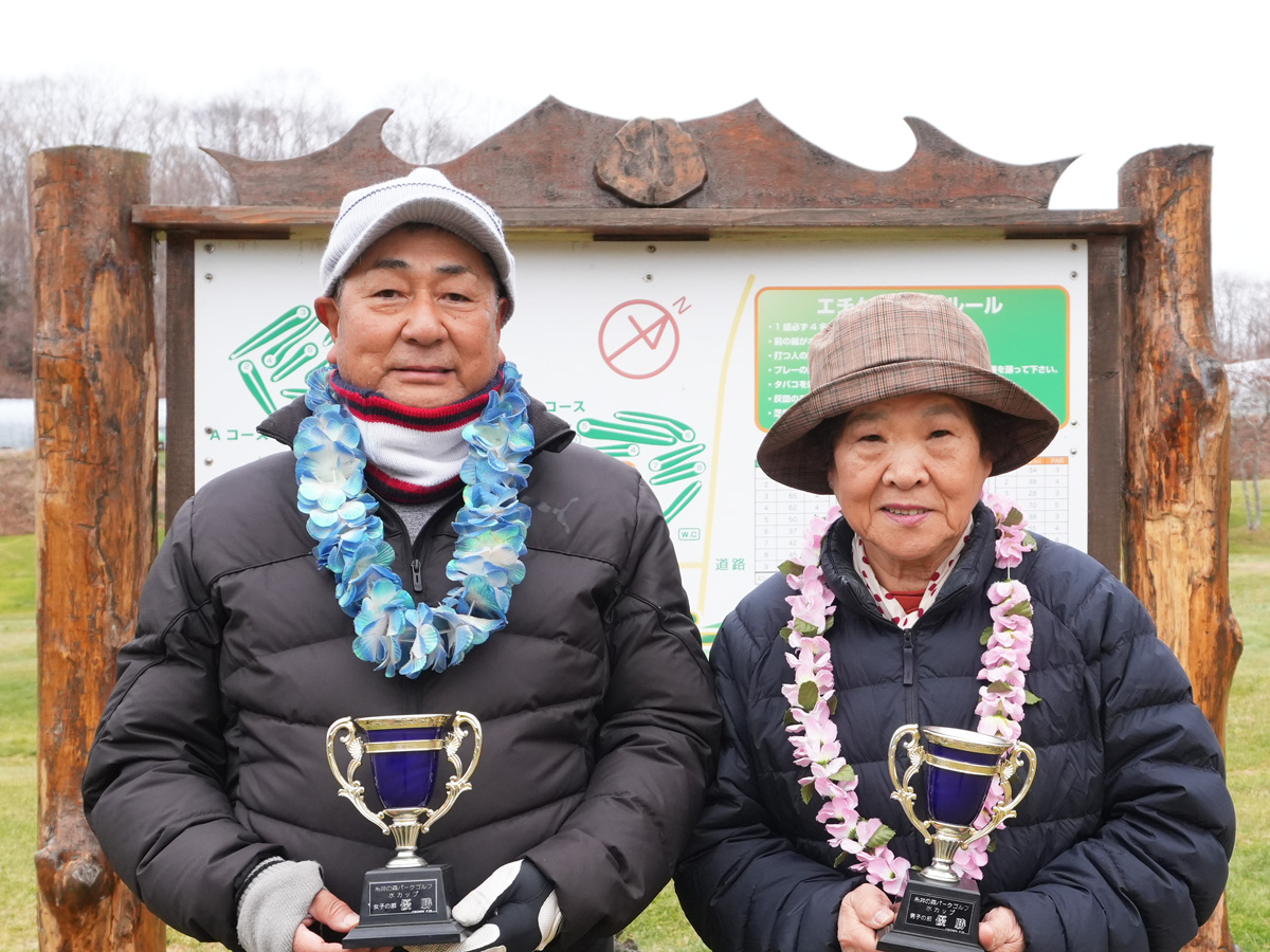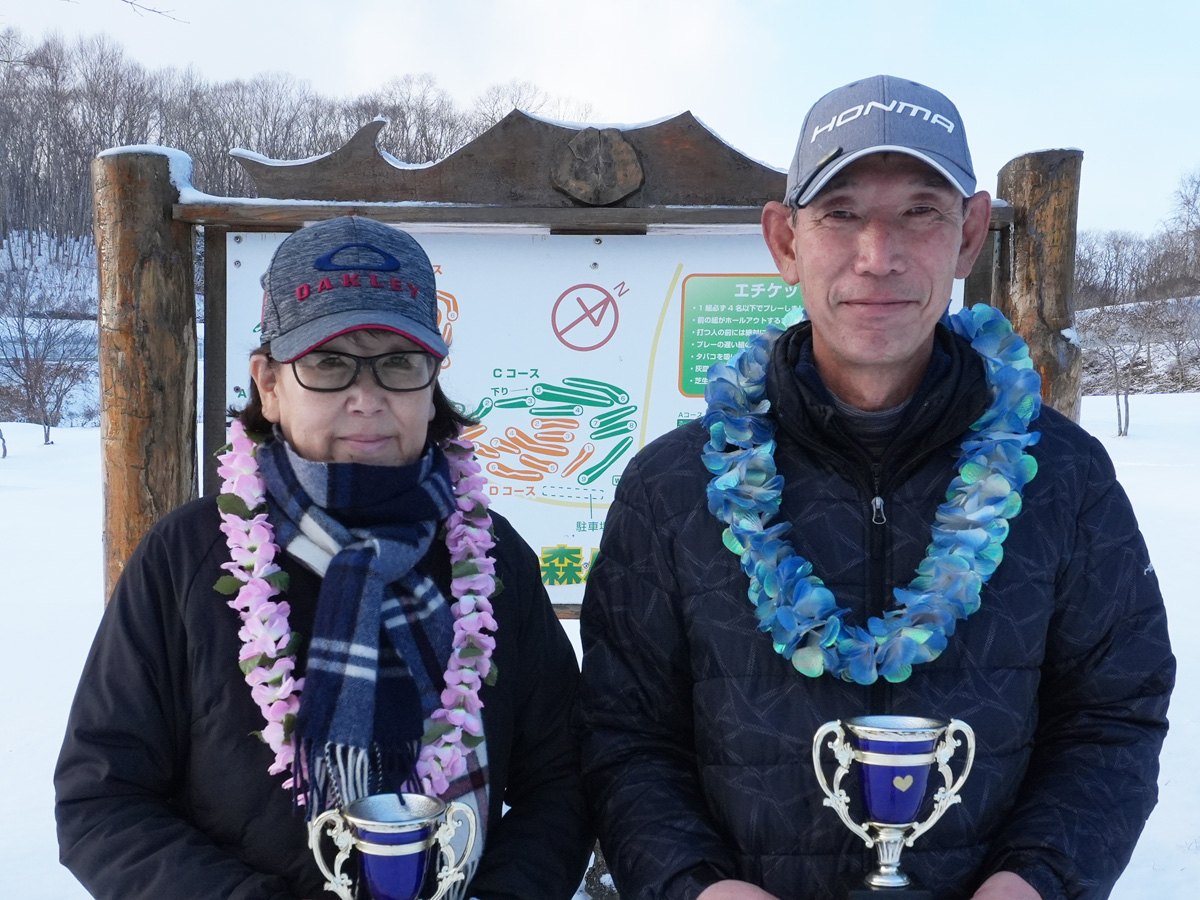 参加者20名 12月15日(月)12時30分スタート[ 優勝者 ]高安昭仁さん・門脇豊子さん ネット89今日は月曜のお楽しみ「月曜ペアでしょう」。朝からの除雪作業、たいへんお疲れ様でした。昨夜からの大雪は12月の苫小牧としては観測史上最高だったとか。仕上げに雨まで降ってくれて重い雪に体力を削られた中でのご参加、本当にありがとうございました。結果は89で高安昭仁さん、門脇豊子さんペアが優勝。雪の影響で、いつものステキな定位置で記念撮影ができませんでしたが、勝利の価値は一緒です。おめでとうございます!