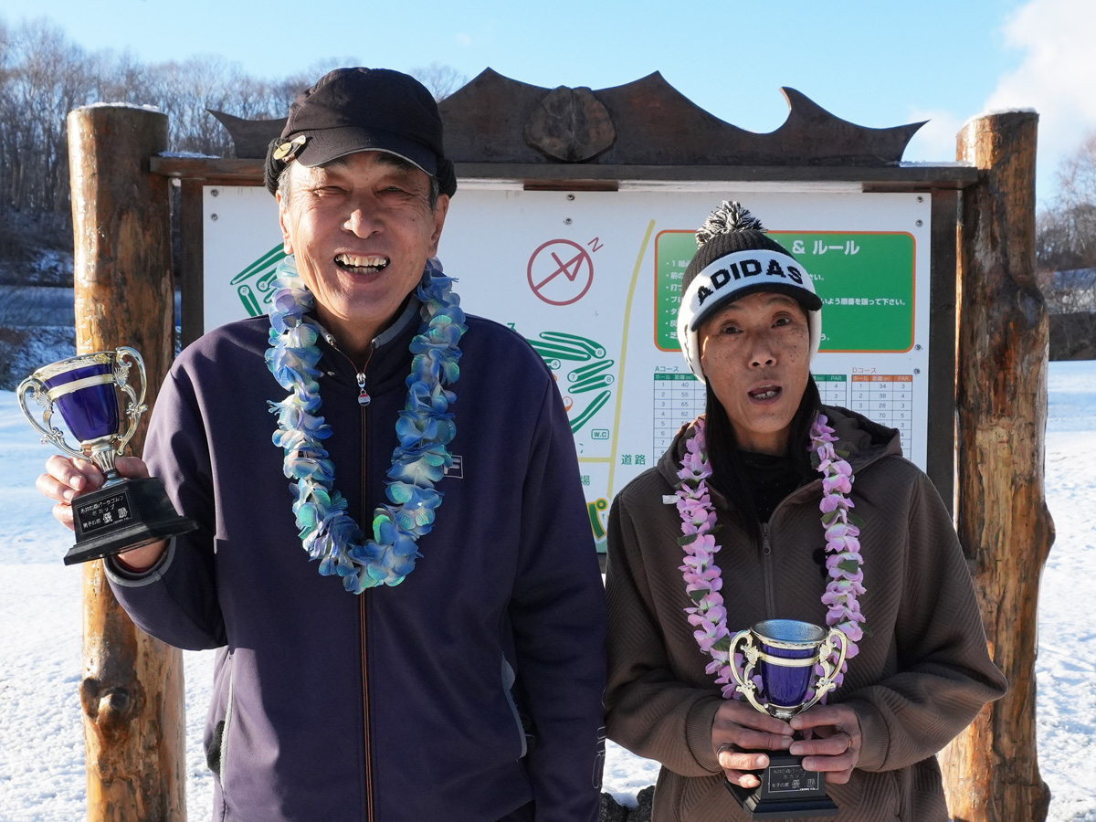 参加者33名 12月12日(金)12時30分スタート[ 優勝者 ]男子/高橋秀広さん ネット84女子/野表恵子さん ネット87今日は屋内だけの「糸井の森金杯」です。昨シーズンから久々復活の開催となりました。スケートリンクのようなツルツル路面でヒヤヒヤ運転だったと思いますが、ご参加ありがとうございました。結果は男子は高橋秀広さん、女子は野表恵子さんのお二人が二桁ハンデを武器に圧勝。おめでとうございます!ベスグロは男子は92、女子は99でした。