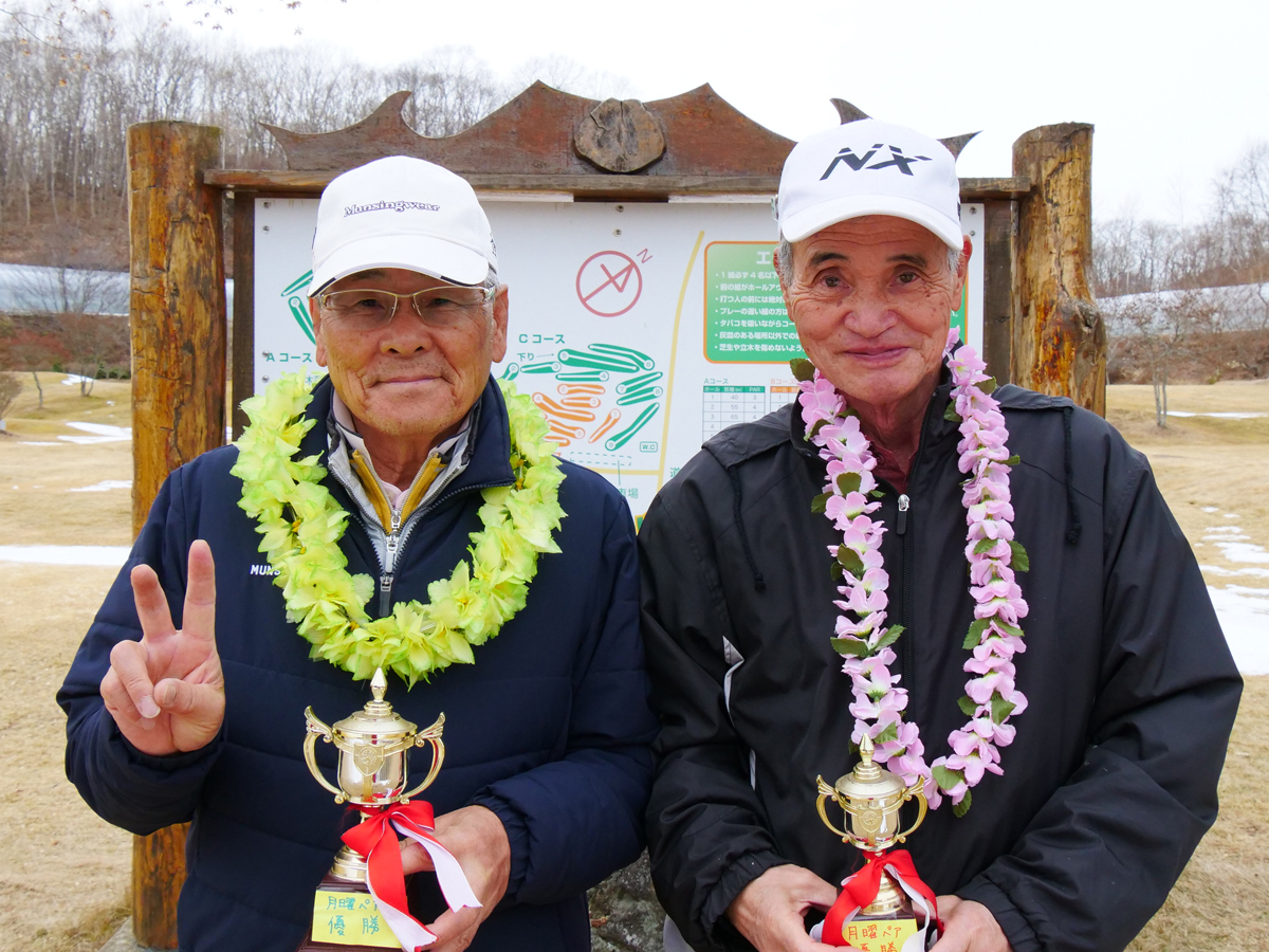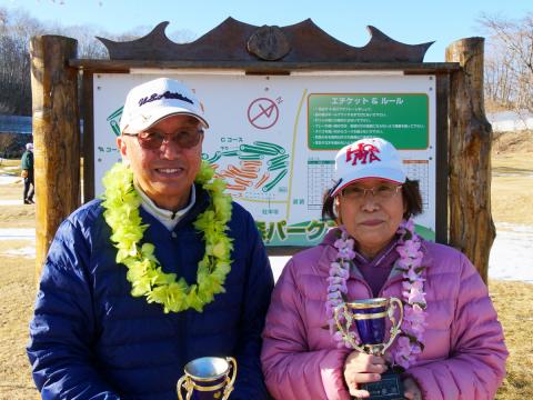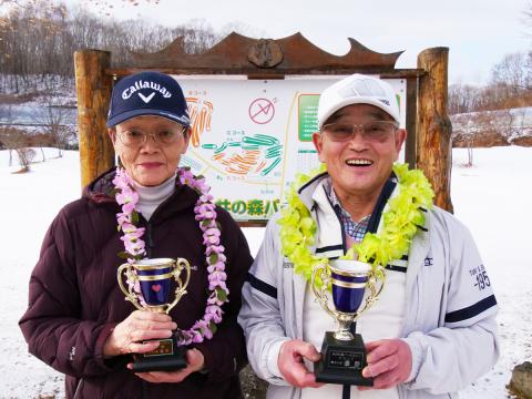 参加者17名 8月8日(金)12時30分スタート[ 優勝者 ]男子/田中正さん ネット84女子/三條えみこさん ネット95今日は姉妹コース「はまなすクラブ」のお遊び金杯です。時折雨がパラつき遠くでは雷がゴロゴロ鳴ってる誰もパークをしないような天気でしたが、金杯ファンには関係なかったようです。男子は名司会者の田中正さん、女子は5日の糸井の森月例で25度目の栄冠に輝いた三條えみこさんが、お2人ともシングルハンデ&ベスグロでツッコミどころが無い文句なしの優勝となりました。おめでとうございます!