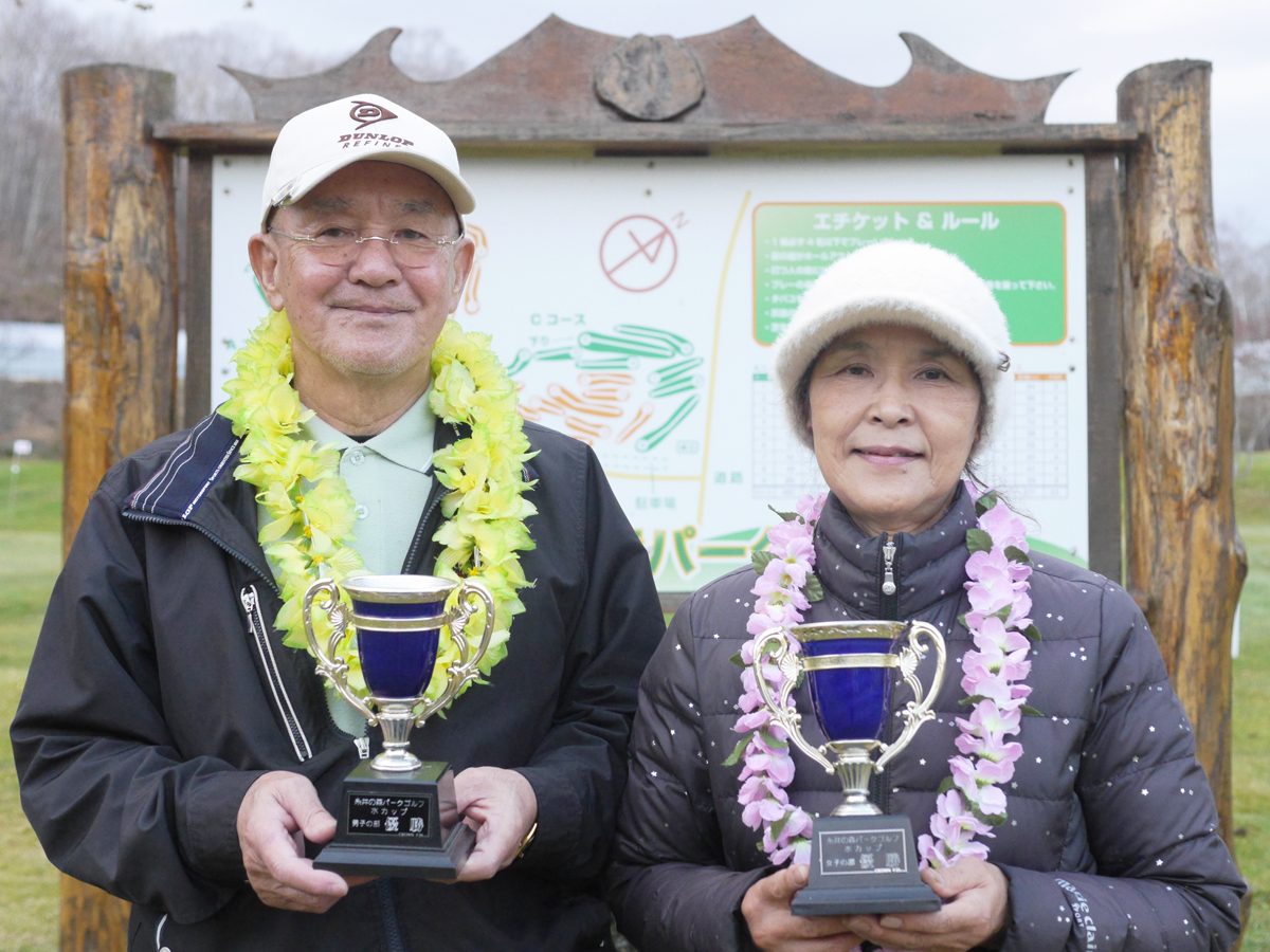 参加者38名 5月2日(金)12時30分スタート[ 優勝者 ]男子/清水正廣さん ネット98女子/山本えり子さん ネット92今日は姉妹コース「はまなすクラブ」のお遊び金杯です。風が強く寒い一日となりましたが、ご参加ありがとうございました。優勝は、男子は3人でのプレーオフを制したシングルハンデの清水正廣さん、女子はあと1点でハンデMaxだった山本えり子さんが嬉しいタコハイをゲットしました。おめでとうございます!