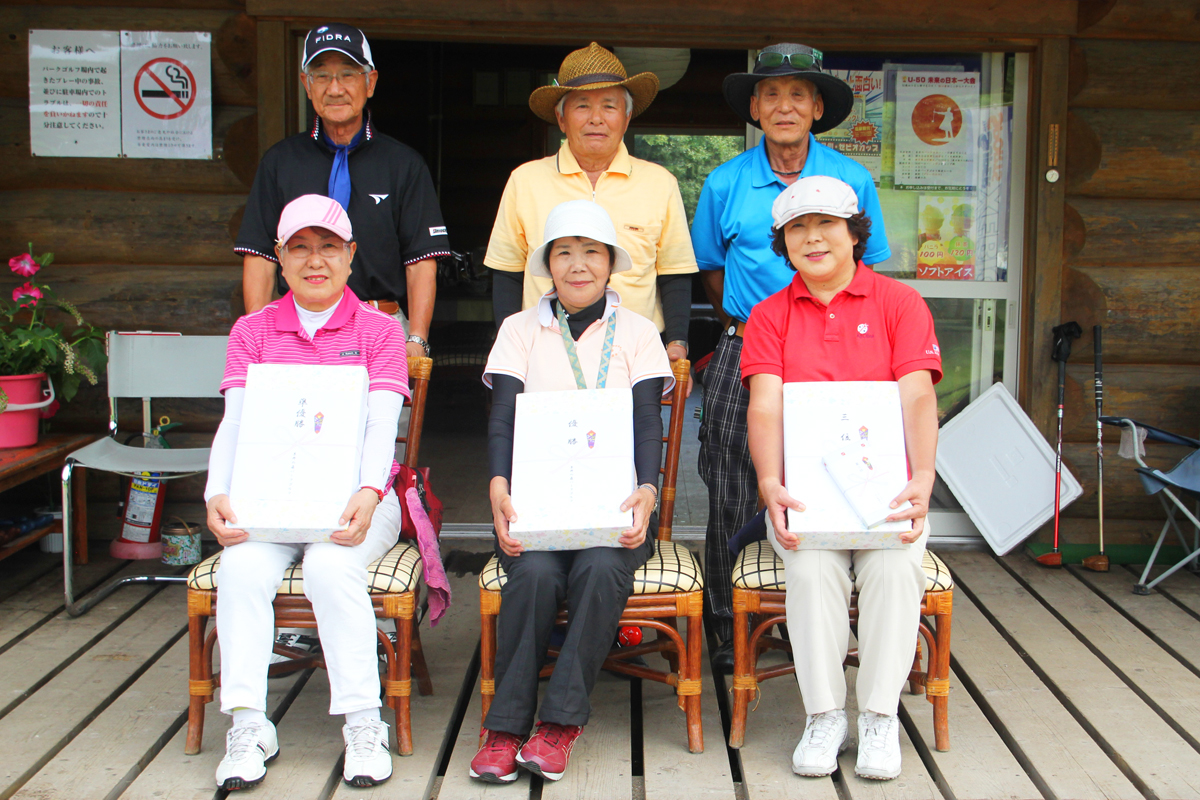 女子はネット96で門脇豊子さんが通算2度目の優勝。同時にグロス97打でベストグロス賞も獲得し、副賞で入浴券が贈られました。準優勝は吉川設子さんがネット97、第3位は池添節子さんがネット99となりました。男子のベストグロス賞は93打で2人が並び、宮尾正信さんが3ホール目で制しました。
