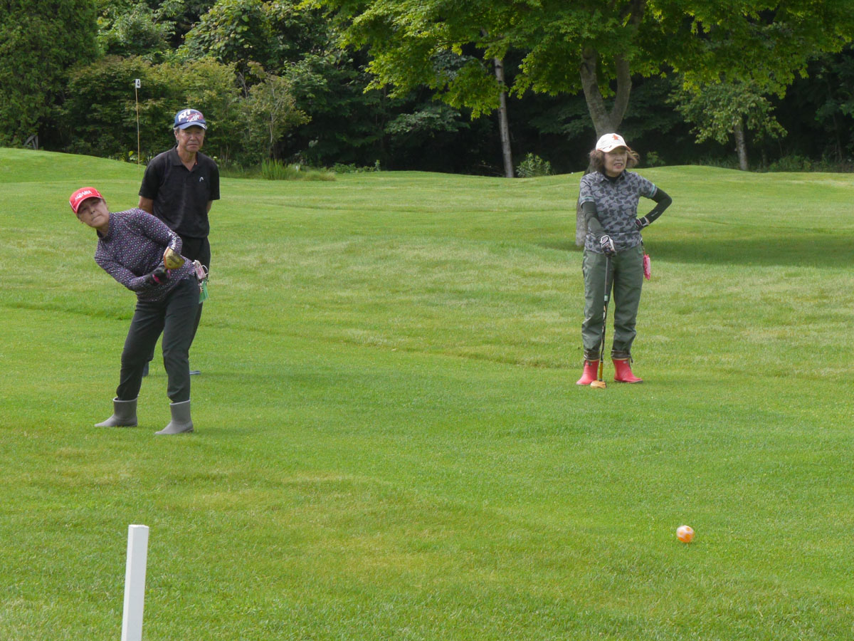 7月20日、姉妹コース合同大会の第4戦となる「あやめ斎場杯・朝ドン!」が男女41名の参加で開催されました。昨日まで続いた長雨のために重たいコース状態となった糸井の森ラウンド第2戦ですが、上がってみればさすがは実力者揃い。「北海道オープン」組が好スコアで上位を独占しました。