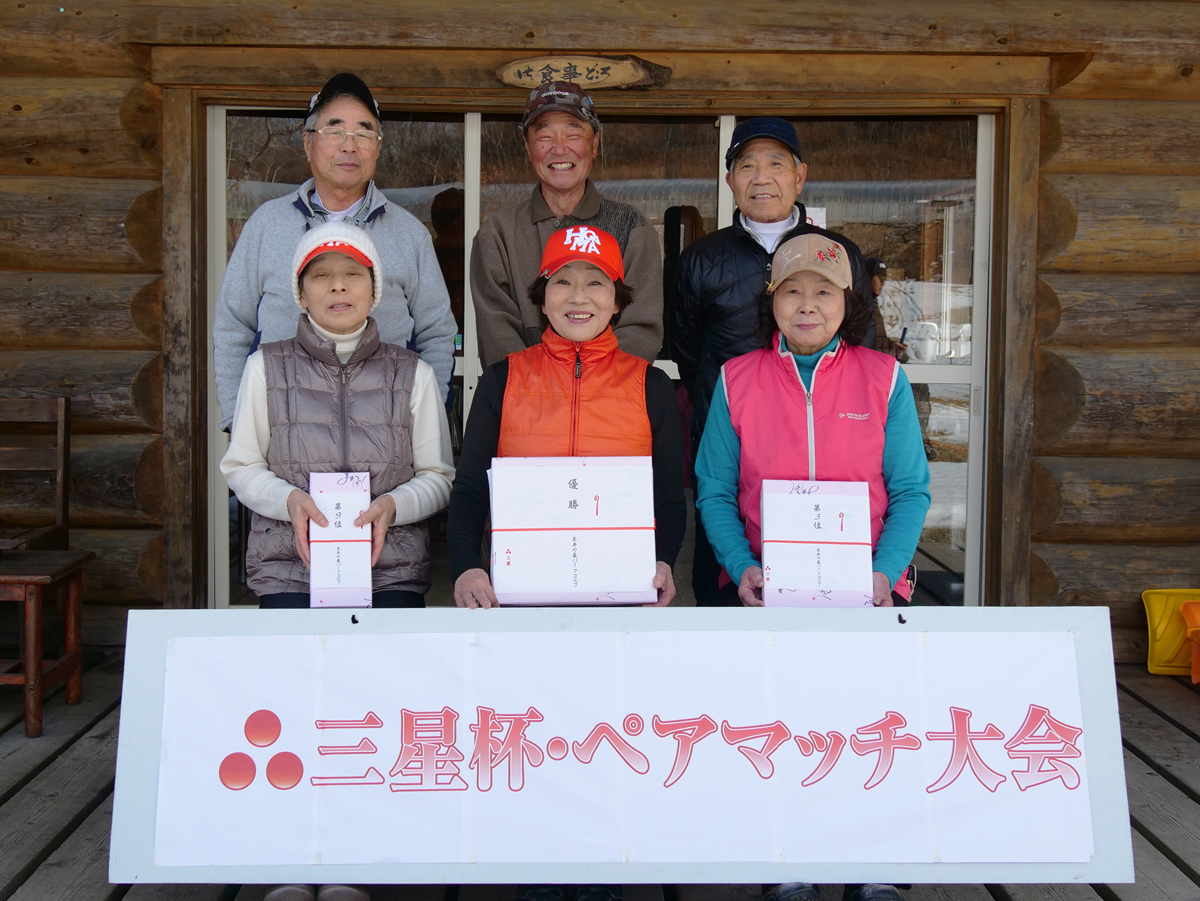 2月15日、屋内ペアマッチシリーズ第2戦「三星杯・冬のペアマッチ大会」が男女ペア44組88名の参加で開催されました。景品に出来立てパンやお菓子が所狭しと並ぶお馴染みの大会が今年も冬に登場。暖かいハウスの中でお菓子のように甘い雰囲気を楽しんでいただいたようです。