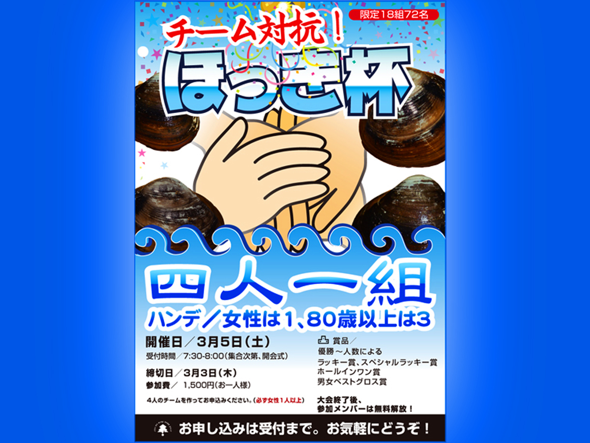 3月5日、「チーム対抗・ほっき杯」が定員の18チーム72名の参加で開催されました。今大会も4人の合計スコアと年齢、性別のハンデを加えた屋内チーム戦・特別ルールで勝負。団体戦ならではの緊張感を楽しんでいただきました。