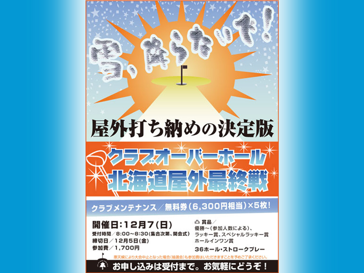 12月7日、年末恒例3連戦のフィナーレを飾る『クラブオーバーホール・北海道屋外最終戦』が男女121名の参加で開催されました。市内外のトッププレーヤーが集まり、時折の雨にも負けず、今年の屋外打ち納めを楽しんでいただきました。